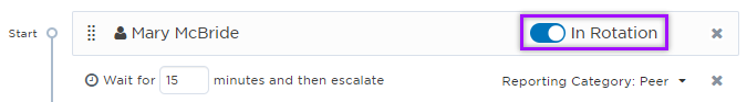- In the member list, locate the member  that you want to remove from the shift's rotation, and toggle off In Rotation.