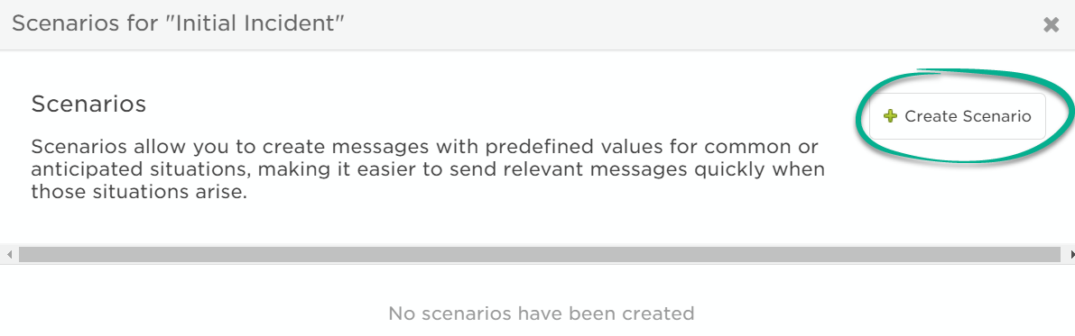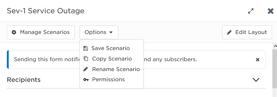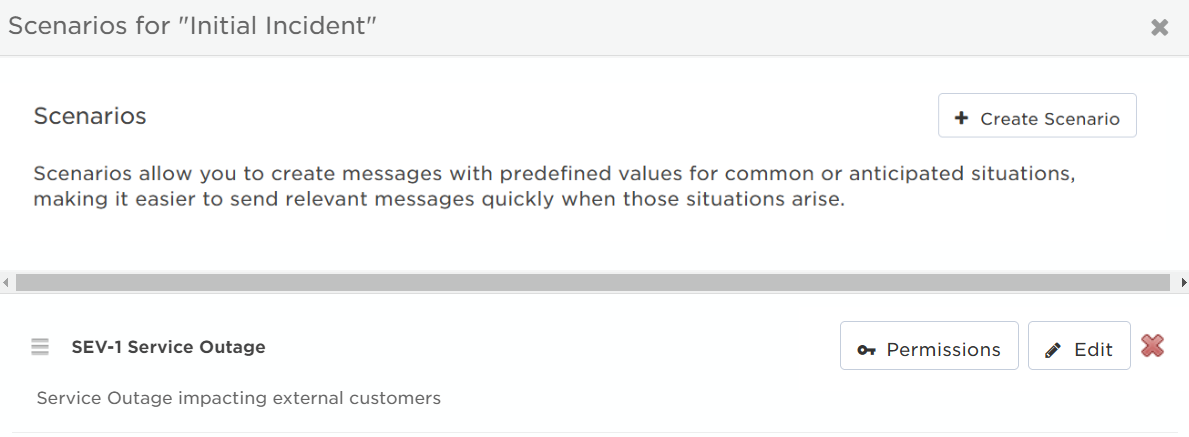 Configuring scenarios is similar to filling out a form to send a message...except that you don't hit send. In this example, we'll create a scenario for an "Initial Incident" for when the incident is a SEV-1 service outage.