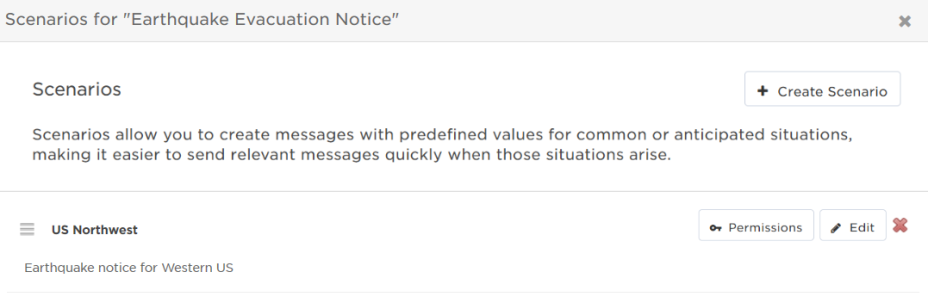 Scenarios enable workflow designers, scenario administrators, and others with the correct permissions to preconfigure forms with values that apply in specific situations. Scenarios enable you to send messages more quickly since you don't have to fill in all the form fields with the same values every time. You can set up multiple scenarios for a single form to account for the variety of real-world incidents.